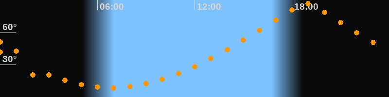 | Höchster Stand (Kulmination) | 18:52 Uhr (h = 87,3°) |