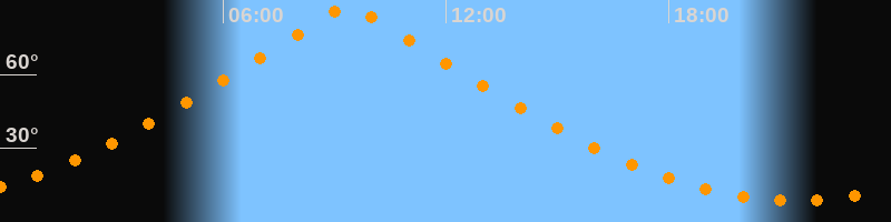 | Höchster Stand (Kulmination) | 09:22 Uhr (h = 87,3°) |