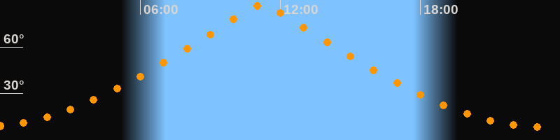 | Höchster Stand (Kulmination) | 11:13 Uhr (h = 87,3°) |