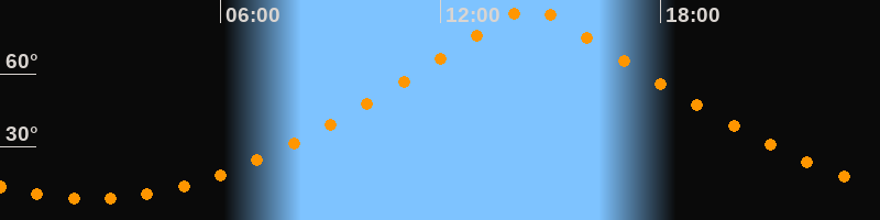 | Höchster Stand (Kulmination) | 14:27 Uhr (h = 87,3°) |