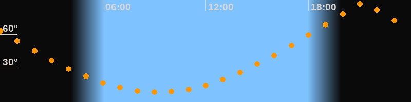 | Höchster Stand (Kulmination) | 21:11 Uhr (h = 87,3°) |