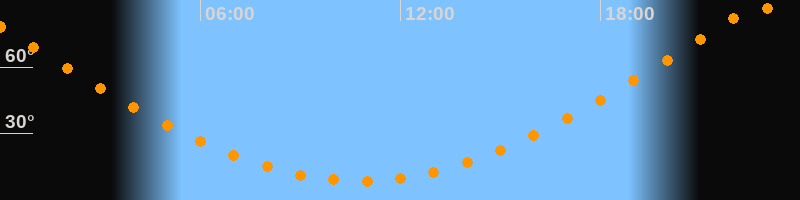 | Höchster Stand (Kulmination) | 22:46 Uhr (h = 87,3°) |