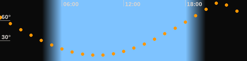 | Höchster Stand (Kulmination) | 21:20 Uhr (h = 87,3°) |