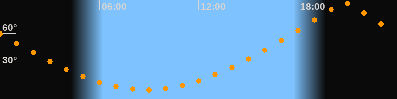 | Höchster Stand (Kulmination) | 20:48 Uhr (h = 87,3°) |