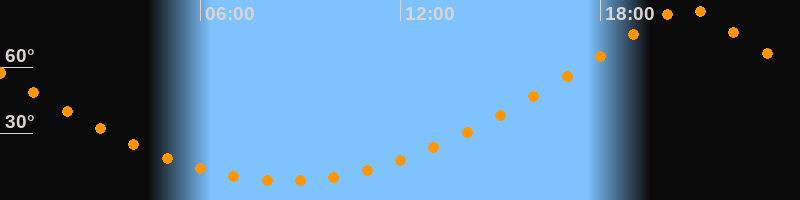 | Höchster Stand (Kulmination) | 20:34 Uhr (h = 87,3°) |
