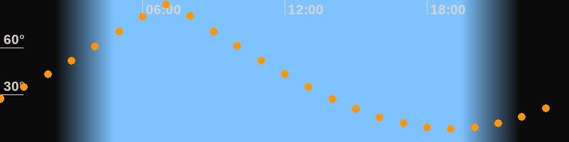 | Höchster Stand (Kulmination) | 07:00 Uhr (h = 87,3°) |