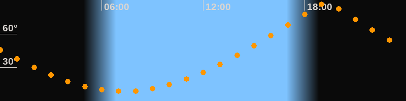 | Höchster Stand (Kulmination) | 19:16 Uhr (h = 87,3°) |
