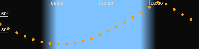 | Höchster Stand (Kulmination) | 19:17 Uhr (h = 87,3°) |
