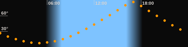 | Höchster Stand (Kulmination) | 16:55 Uhr (h = 86,4°) |