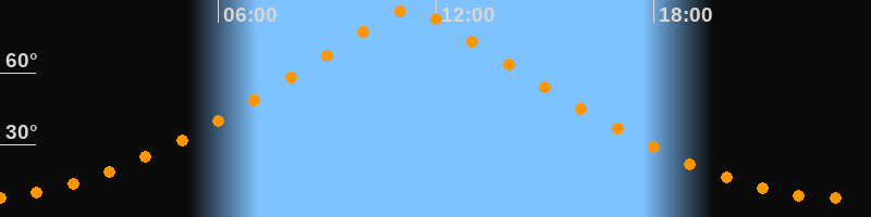 | Höchster Stand (Kulmination) | 11:17 Uhr (h = 86,4°) |