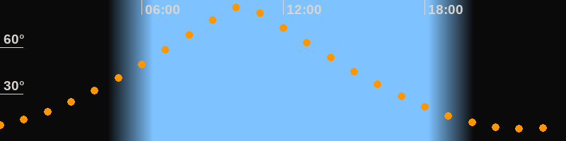 | Höchster Stand (Kulmination) | 10:14 Uhr (h = 86,4°) |