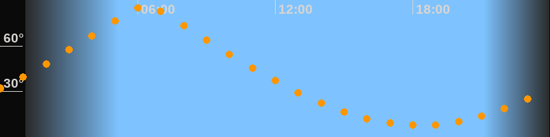 | Höchster Stand (Kulmination) | 06:20 Uhr (h = 86,4°) |