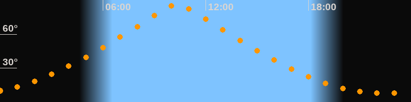 | Höchster Stand (Kulmination) | 10:20 Uhr (h = 86,4°) |
