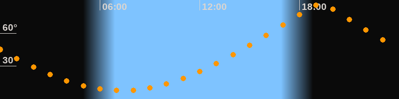 | Höchster Stand (Kulmination) | 19:16 Uhr (h = 86,4°) |