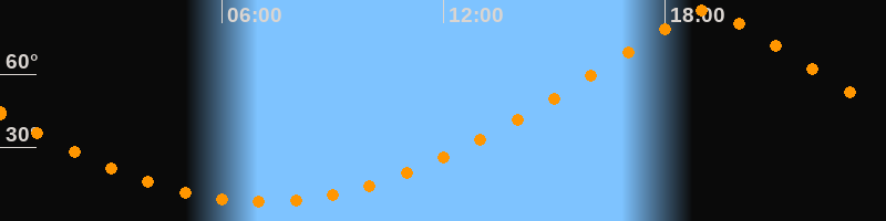 | Höchster Stand (Kulmination) | 19:08 Uhr (h = 86,4°) |