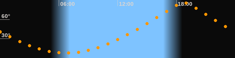 | Höchster Stand (Kulmination) | 18:45 Uhr (h = 86,4°) |