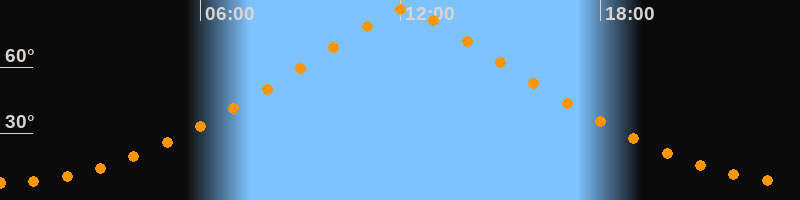 | Höchster Stand (Kulmination) | 12:08 Uhr (h = 86,4°) |