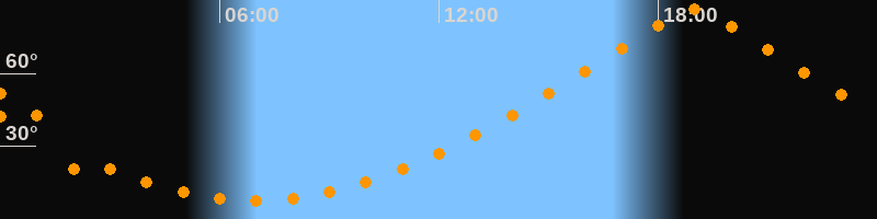 | Höchster Stand (Kulmination) | 18:58 Uhr (h = 86,4°) |