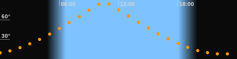 | Höchster Stand (Kulmination) | 10:32 Uhr (h = 86,4°) |