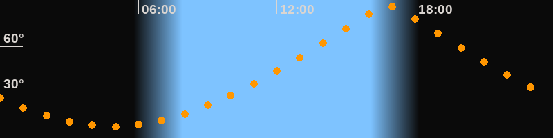 | Höchster Stand (Kulmination) | 16:50 Uhr (h = 86,4°) |