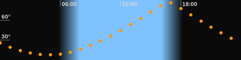 | Höchster Stand (Kulmination) | 16:46 Uhr (h = 86,4°) |