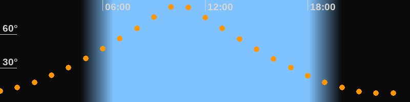 | Höchster Stand (Kulmination) | 10:29 Uhr (h = 86,4°) |