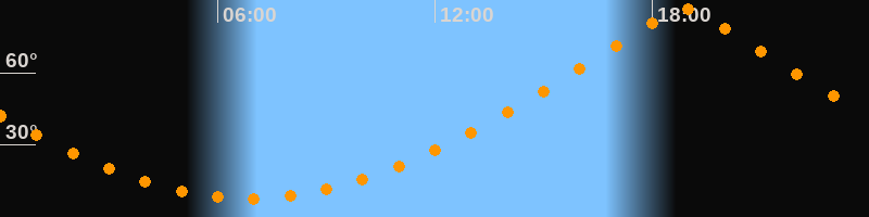 | Höchster Stand (Kulmination) | 18:53 Uhr (h = 86,4°) |
