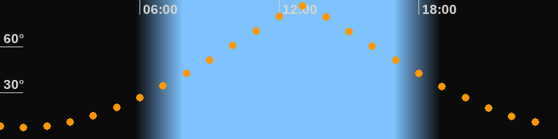 | Höchster Stand (Kulmination) | 12:59 Uhr (h = 86,4°) |