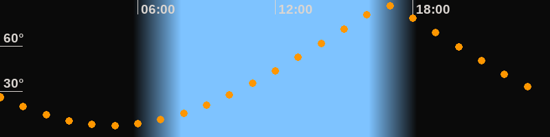 | Höchster Stand (Kulmination) | 16:52 Uhr (h = 86,4°) |