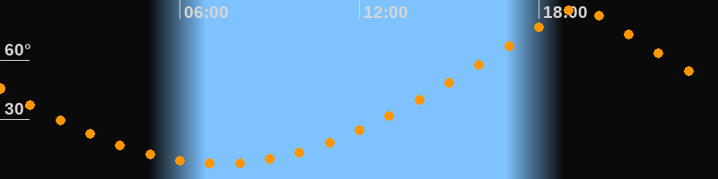 | Höchster Stand (Kulmination) | 19:18 Uhr (h = 86,4°) |