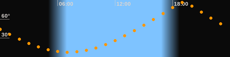 | Höchster Stand (Kulmination) | 19:06 Uhr (h = 86,4°) |