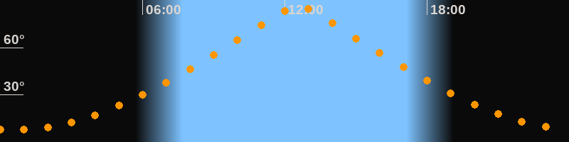 | Höchster Stand (Kulmination) | 12:33 Uhr (h = 86,4°) |