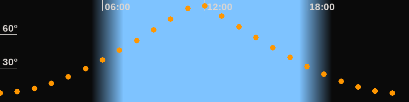 | Höchster Stand (Kulmination) | 11:38 Uhr (h = 86,4°) |