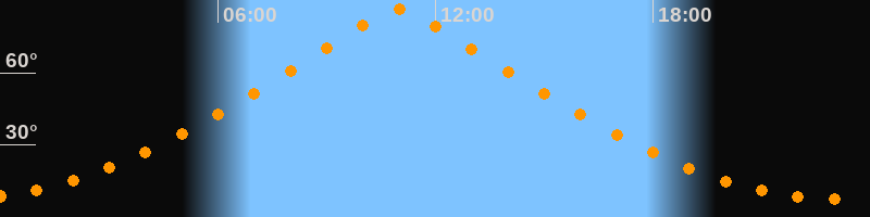 | Höchster Stand (Kulmination) | 10:59 Uhr (h = 86,4°) |