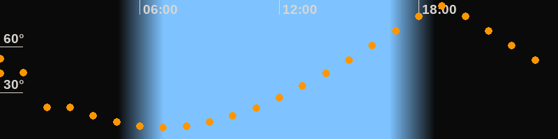 | Höchster Stand (Kulmination) | 19:00 Uhr (h = 86,4°) |