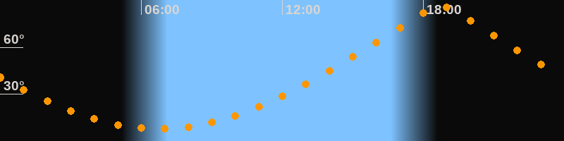 | Höchster Stand (Kulmination) | 18:44 Uhr (h = 86,4°) |