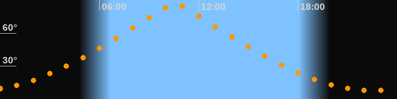 | Höchster Stand (Kulmination) | 10:33 Uhr (h = 86,4°) |