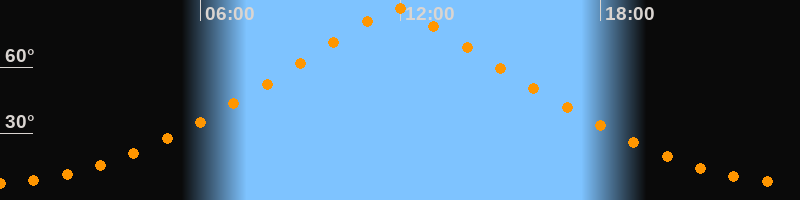| Höchster Stand (Kulmination) | 11:53 Uhr (h = 86,4°) |
