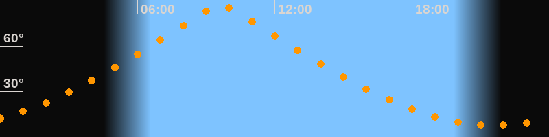 | Höchster Stand (Kulmination) | 09:38 Uhr (h = 86,4°) |