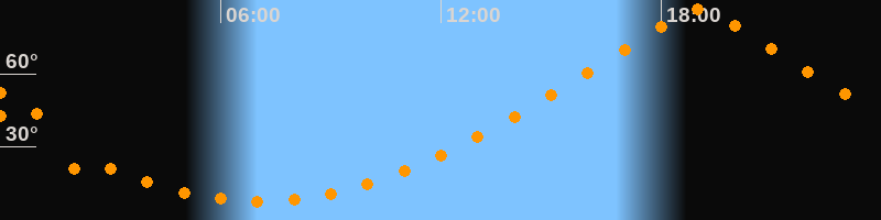 | Höchster Stand (Kulmination) | 19:01 Uhr (h = 86,4°) |