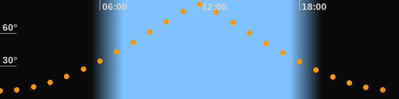 | Höchster Stand (Kulmination) | 11:57 Uhr (h = 86,4°) |