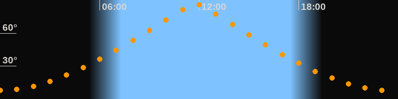 | Höchster Stand (Kulmination) | 11:46 Uhr (h = 86,4°) |