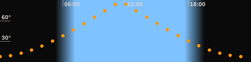 | Höchster Stand (Kulmination) | 11:30 Uhr (h = 86,4°) |