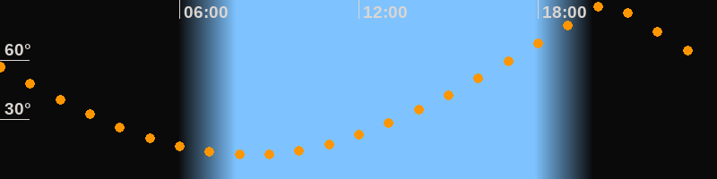 Höchster Stand (Kulmination)20:19 Uhr (h = 89,1°)