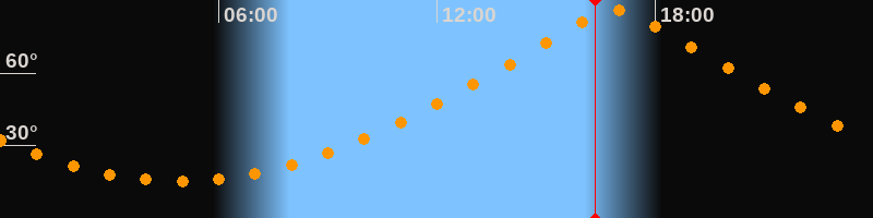 | Höchster Stand (Kulmination) | 16:54 Uhr (h = 86,1°) |