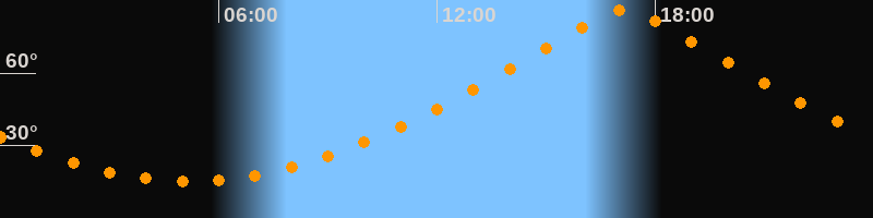 | Höchster Stand (Kulmination) | 17:09 Uhr (h = 86,1°) |