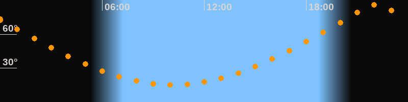 | Höchster Stand (Kulmination) | 22:07 Uhr (h = 86,1°) |