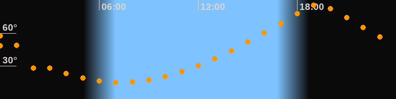| Höchster Stand (Kulmination) | 19:17 Uhr (h = 86,1°) |