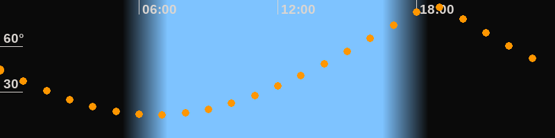 | Höchster Stand (Kulmination) | 18:43 Uhr (h = 86,1°) |