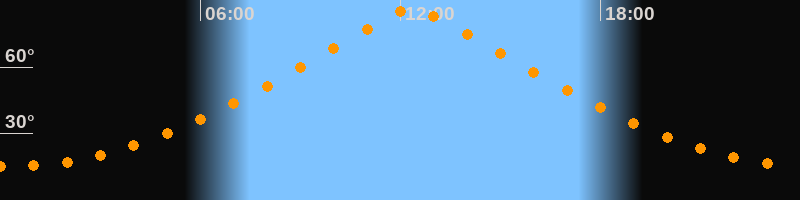 | Höchster Stand (Kulmination) | 12:21 Uhr (h = 86,1°) |